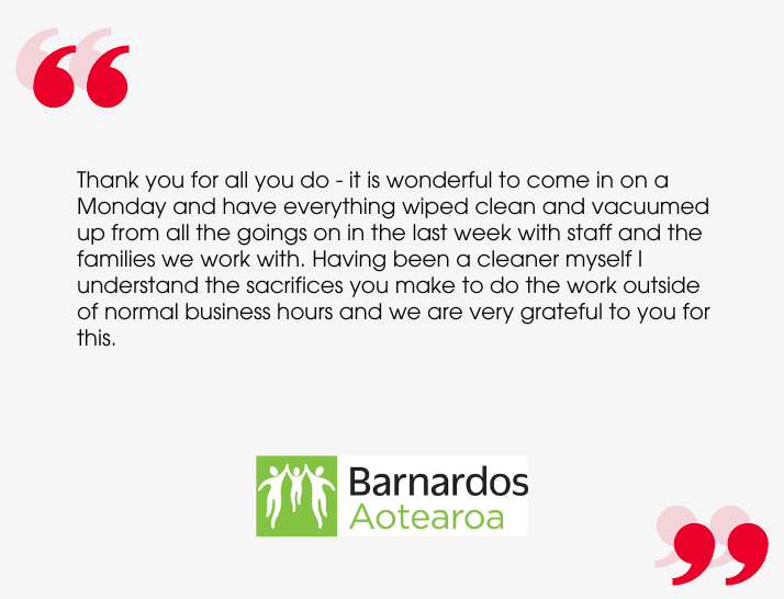From hospitals and healthcare environments to childcare centres, schools, offices and industrial facilities, their efforts have a real impact on people’s wellbeing every single day. Across New Zealand, our clients took the time to share thoughtful and personal messages of appreciation, acknowledging the dedication, dependability and care shown by their cleaning teams.